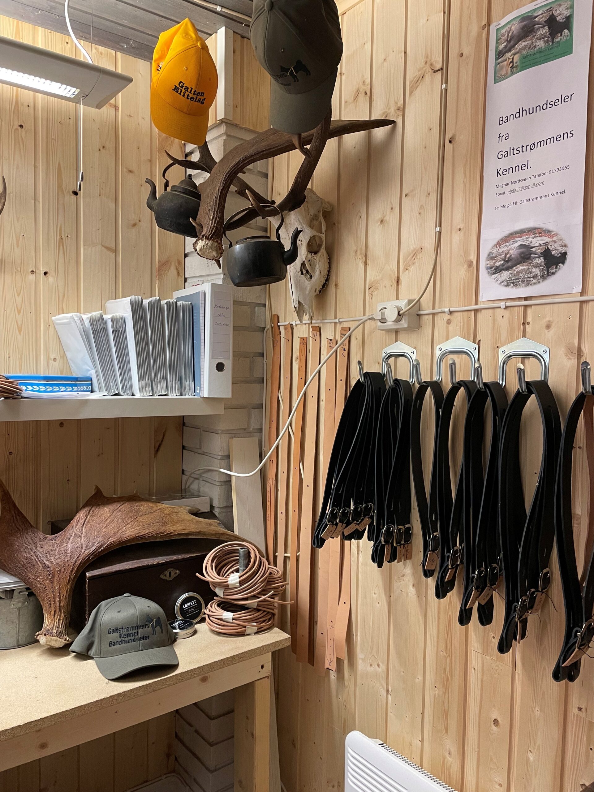 Videre har jeg drevet med avl på både grå elghund og svart elghund. Jeg har i mange år laget seler til jakthunder, og den typen sele jeg produserer, har blitt svært populær.